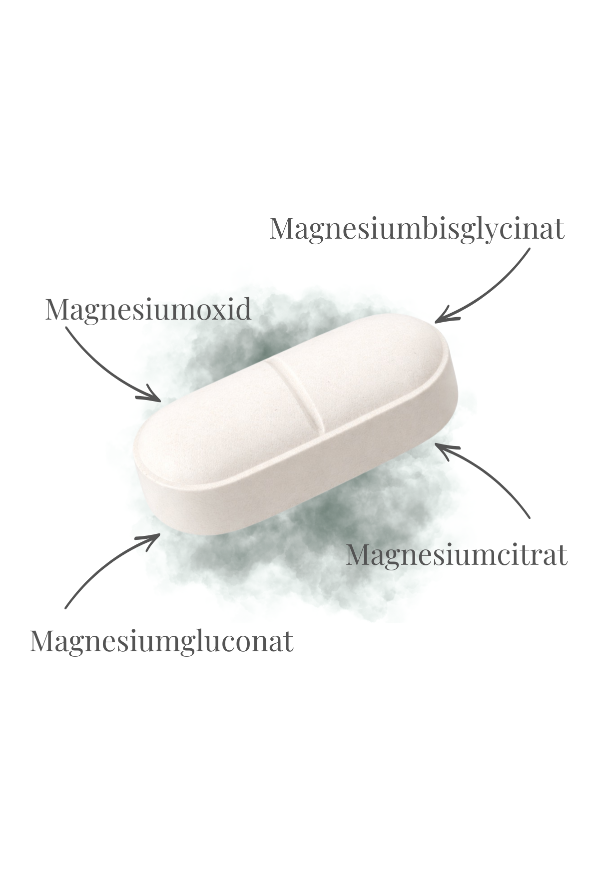 Unsere Tabletten enthalten eine hochwertige Mischung aus verschiedenen Magnesiumverbindungen: Magnesiumbisglycinat, Magnesiumcitrat, Magnesiummalat und Magnesiumtaurat, um eine optimale Aufnahme und Wirksamkeit zu gewährleisten.